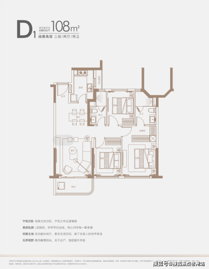 建面约140㎡四房:三开间朝南户型,南北通透,采光条件优质,客厅明亮宽敞,彰显大气布局。