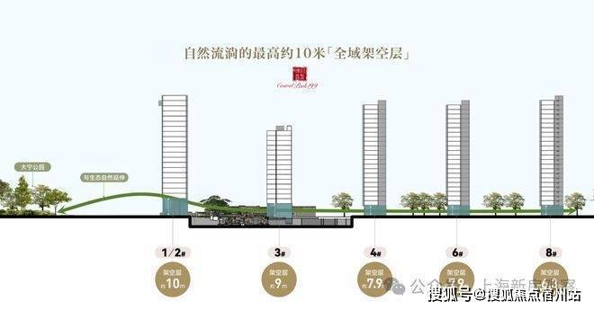 公园嵌入式浮岛社区:全域约 6.3米 -10 米架空设计,让公园绿意与山水诗韵自然邀约入室,打造公园嵌入式浮岛社区,呈现无界的社区风景。规划缤纷童趣、社区会客厅等多元架空层空间,于此开启生活的温暖缤纷。