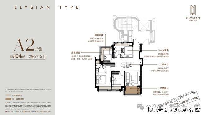 ③约270度弧面转角。重塑景观和建筑的关系,于外创造更柔和的建筑视觉效果,从内部也能打开更广角的观景视野。