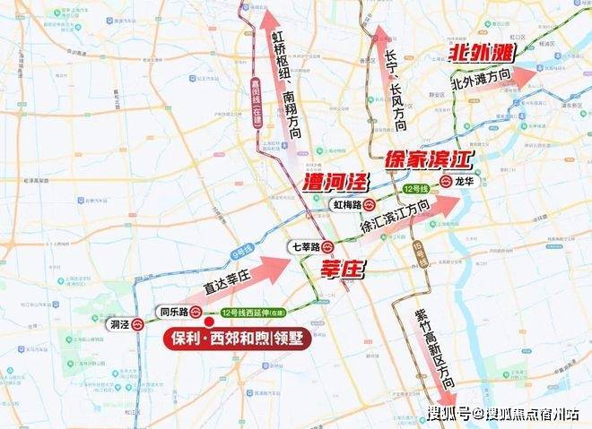 在交通便利性方面,保利西郊和煦展现了卓越优势。 项目紧邻地铁9号线洞泾站,仅约1.2公里距离,乘坐地铁约30分钟即可直达徐家汇商圈,轻松应对日常购物与休闲需求。此外,在建的12号线西延伸段沪松公路站距项目仅800米,预计2027年通车。通车后, 搭乘12号线可快速换乘11号线、1号线等主干线路,30分钟内抵达漕河泾,45分钟覆盖陆家嘴区域,显著拉近了与城市核心区的时空距离。对于自驾出行者,沈海高速及在建的沪松公路快速路确保了高效出行,20分钟可达虹桥枢纽,1小时内畅达长三角主要城市。