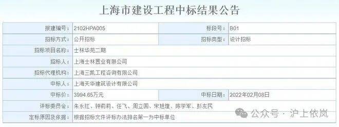 2022年2月8日,上海天华建筑设计有限公司以3994.65万元中标士林华苑二期地块设计项目!