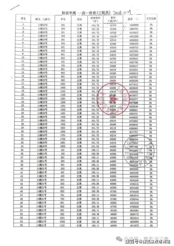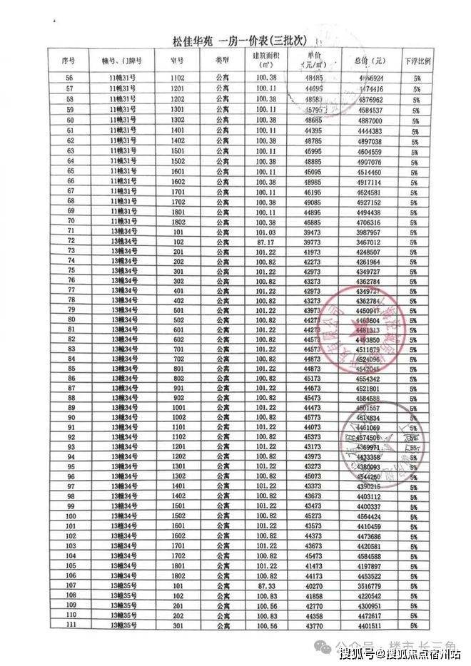 一房一价表如下:
