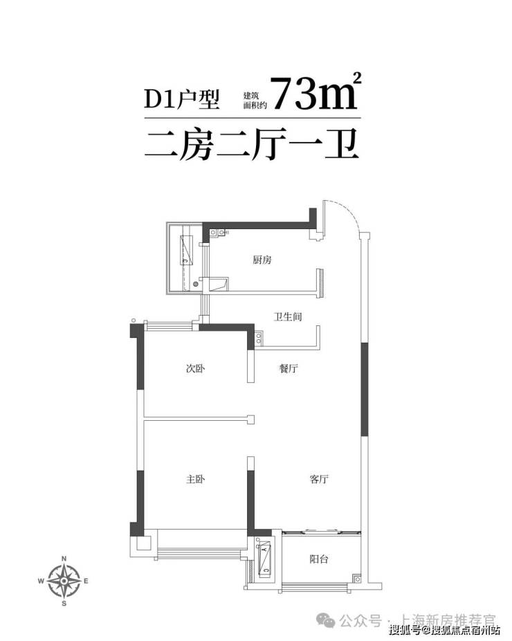 建面约73㎡舒适两房一卫,年轻家庭的向往;