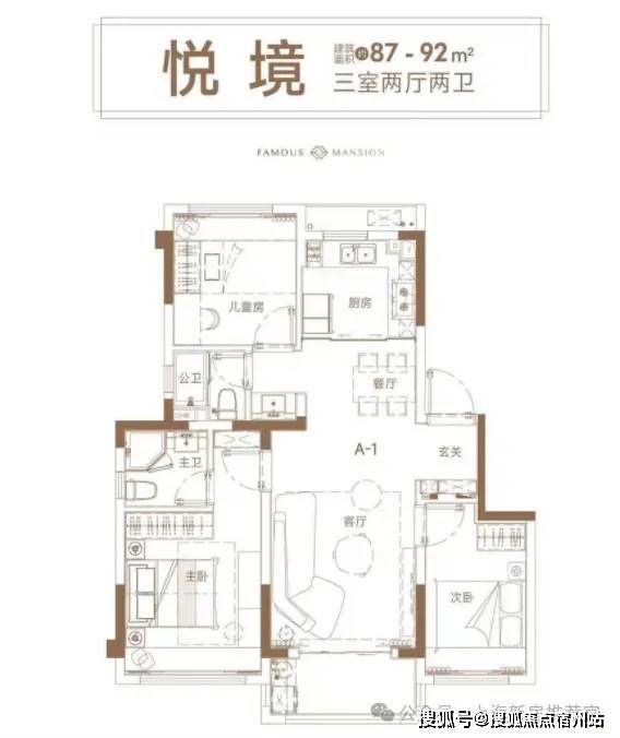 先来看看 建面约87-92㎡三房,做到了双卫布局,能完美实现市面上“百平3房”的布局,紧凑户型+超强功能性,让买房人的钱都用在刀刃上!