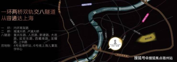 1环2桥2隧道双轨交:内环内,南浦大桥、卢浦大桥,复兴路隧道、人民路隧道,门口轨道交通4/6号线。