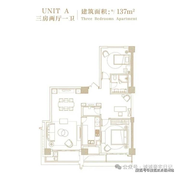 137㎡2+1户型 南北朝向(一梯两户)⬇⬇