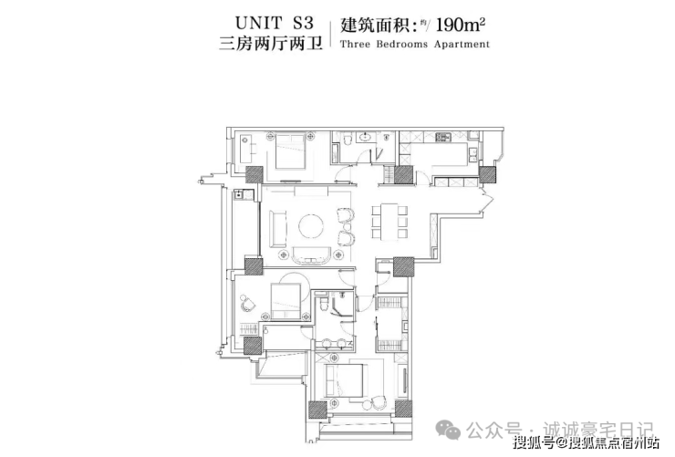 190㎡3房 东南朝向或西南朝向(一梯两户)⬇⬇