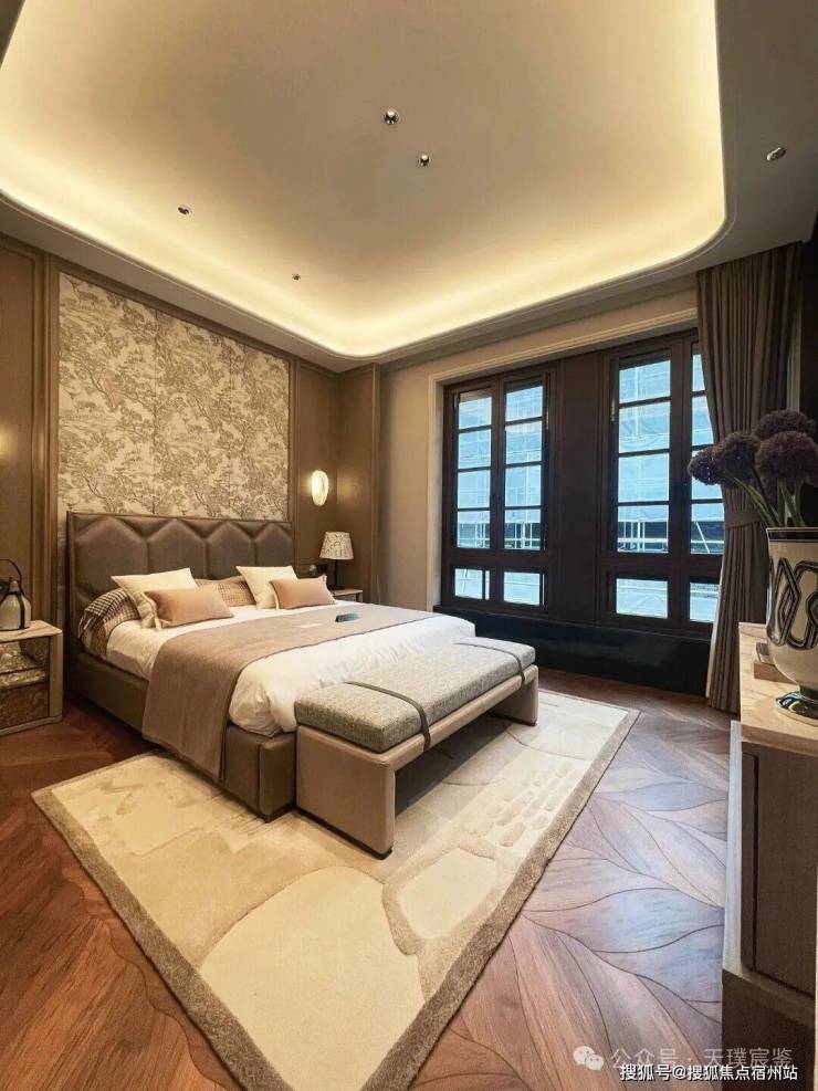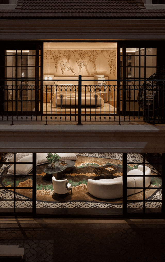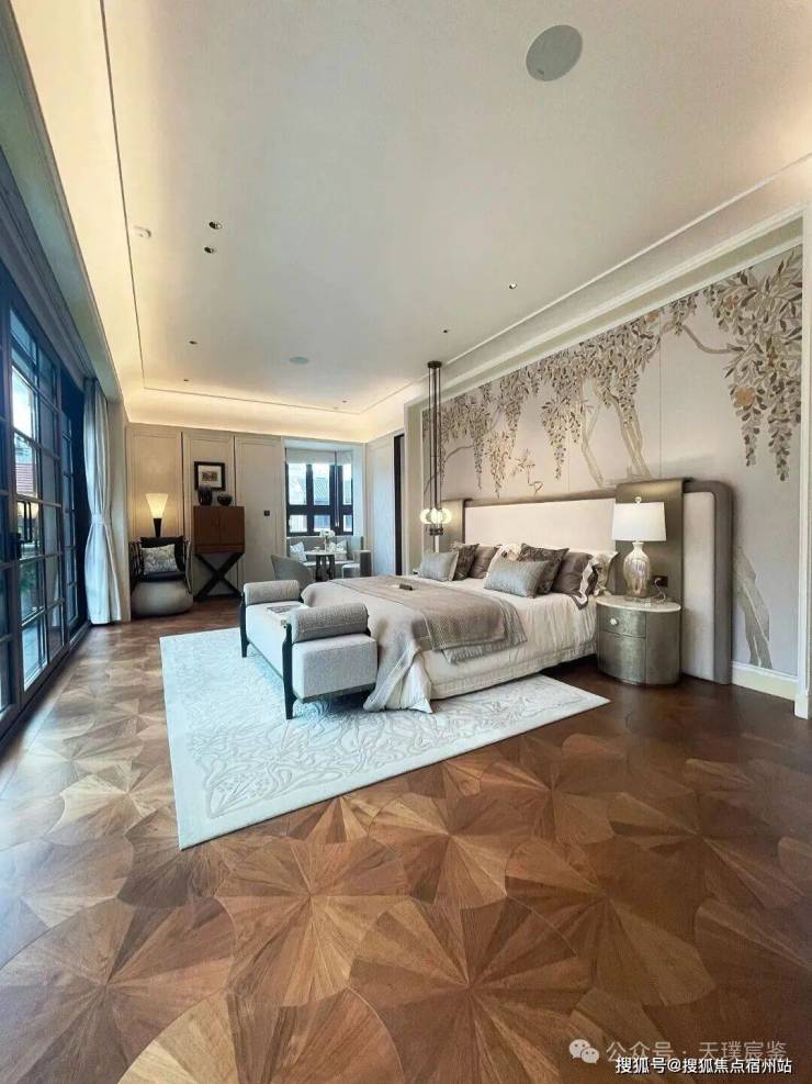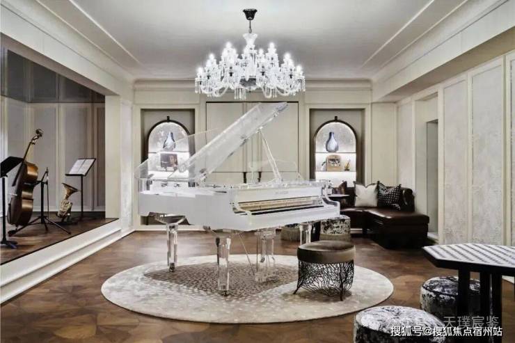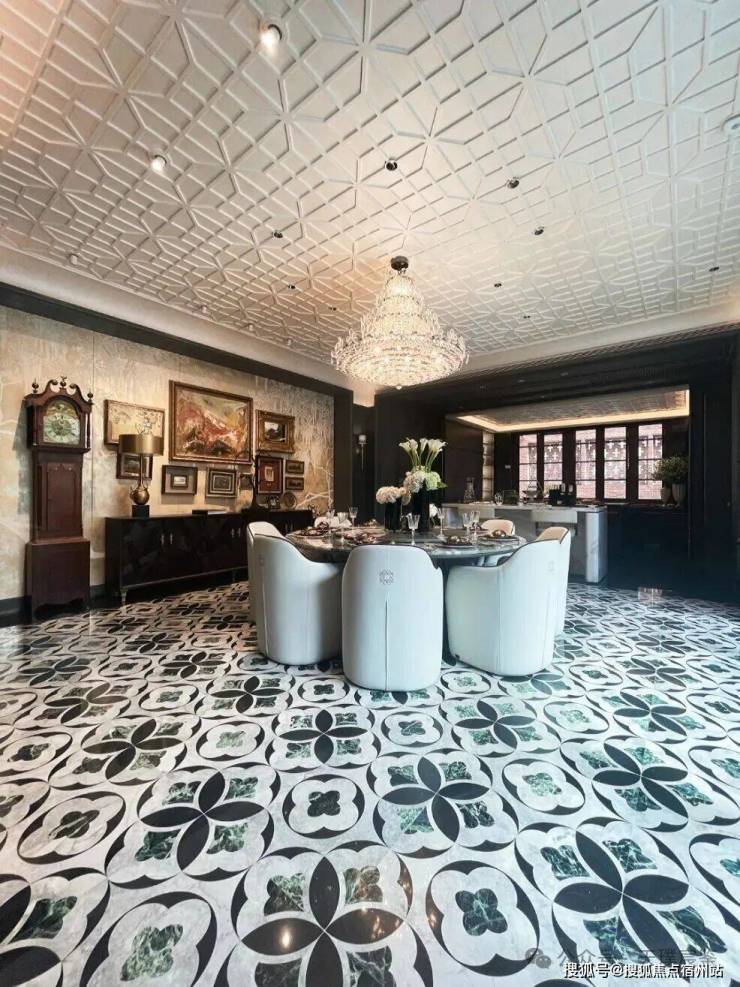 设计师精心划分地下一、二层功能。地下一层是女主人与孩子的温馨天地,二层是男主人私密会客空间。 空间里,拼接地板如时光画卷,华丽吊灯似夜空星辰,是恰到好处的精神符号。 中式沉稳与意式浪漫在此碰撞,诠释历史文化与现代精髓融合,彰显非凡魅力,展现主人家族优雅坚定的精神内核。