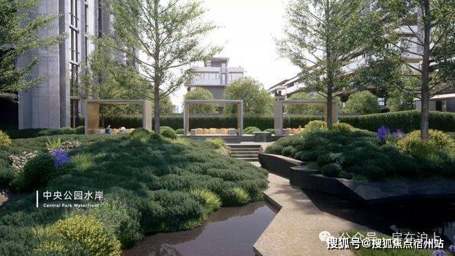 在社区内部,则通过一条自然水轴,串联六大景观节点,从约35米宽的酒店级社区大门,到内部水院以及不同主题的景观花园,步步皆景。