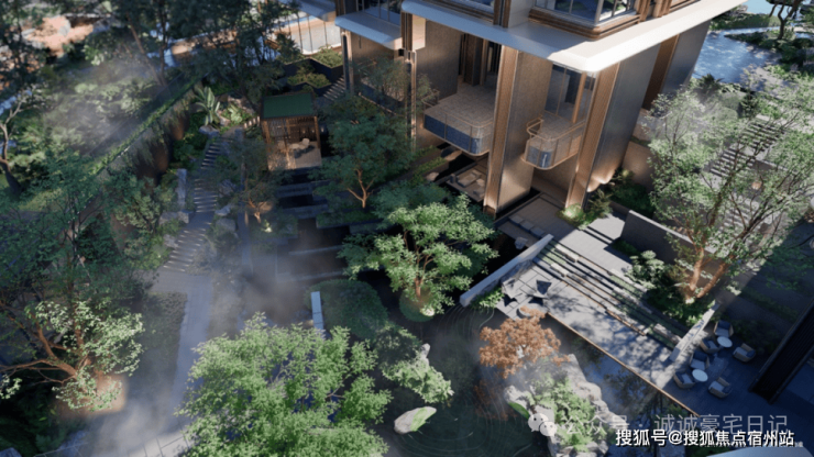 园林首创近7米垂直高差的“立体峡谷景观”,结合5-8.3米全架空层,形成14米高差的全龄剧场,将山川溪谷引入都市核心。金茂主动放弃了中央位置一套本可以做的大户型,腾出空间,打造了一个架空的悬浮观景平台,每一栋的架空层,都变成了视野通透的“珠光宝盒”。