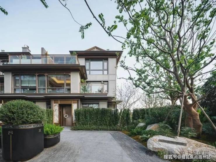 建筑上,打造宋式三段式立面、深檐挑角设计,细节处更见诚意:翡翠石造景、铜筑大门、太湖石点缀,复刻宋代精工;古铜色铝板+木纹铝板+仿石铝板打造的立面,既有宋式雅韵,又兼具现代质感;约3:7的窗墙比,让阳光与风景最大化涌入室内。这种“有文化、有美学、有质感”的墅居,恰好击中了高净值人群对“精神归属”的需求。