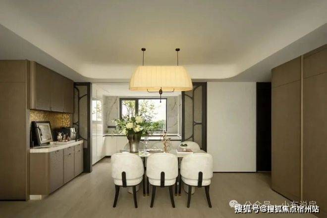 金属踢脚线、弧形柔角吊顶等细节处理,彰显匠心独运。