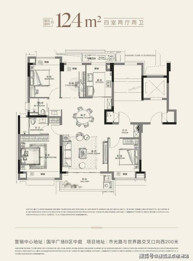 建面约124㎡的一步到位改善四房✅✅越秀杨浦天玥售楼处电话:400 - 882 - 4258✅✅