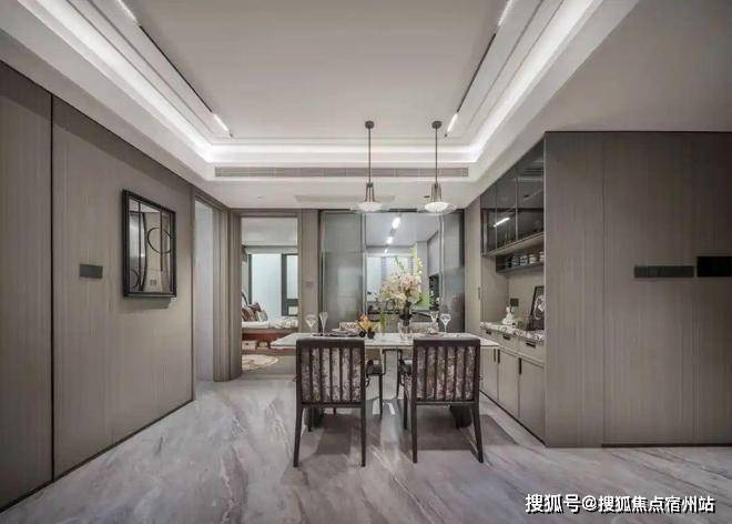 餐边柜配上玄关柜同款雪山飞狐奢石;✅✅越秀杨浦天玥售楼处电话:400 - 882 - 4258✅✅配上1m8餐桌空间也绰绰有余。