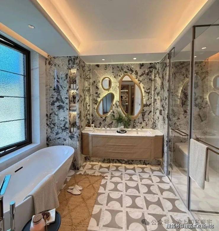 比如,半标无边界泳池以渐变马赛克墙面、水波纹感天花与透景玻璃幕墙,将下沉庭院景致融入其中,这处可游憩的水下艺境,就是一座美术馆级的美学场域。