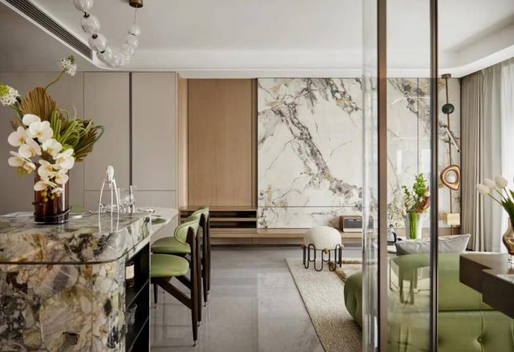 另外项目客厅背景墙不惜成本的采用 岩板交付,质感更强颜值更高。