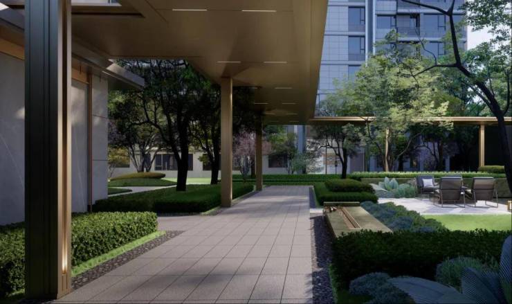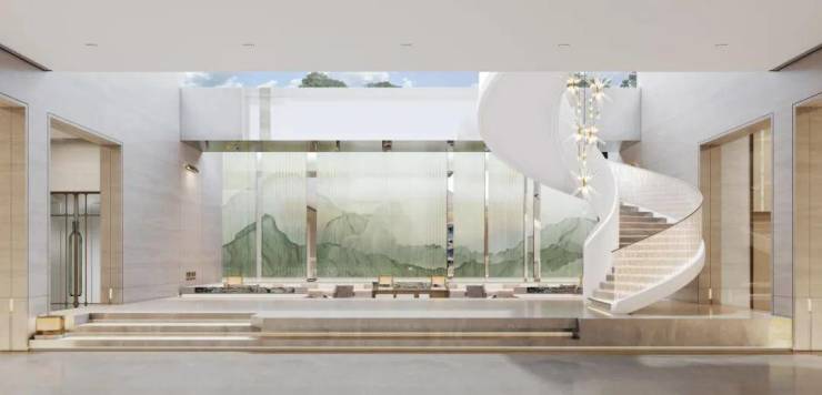 步入 庭院,精致会客厅搭配匆匆绿意和层叠水院,颇具层次感的美景让归家的业主瞬间放松,卸下一天的疲惫,也深度诠释了项目 归家即是度假开始的设计理念!