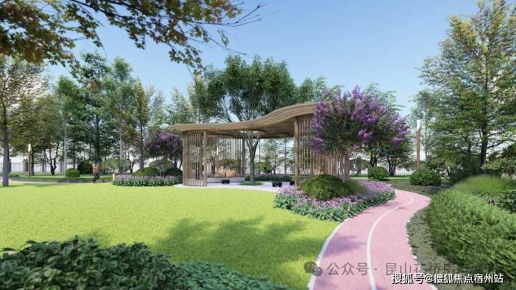以自然会客厅为核心主景,融入艺术廊架、阳光大草坪、泛会所架空层、健康跑道、儿童乐园等功能场地