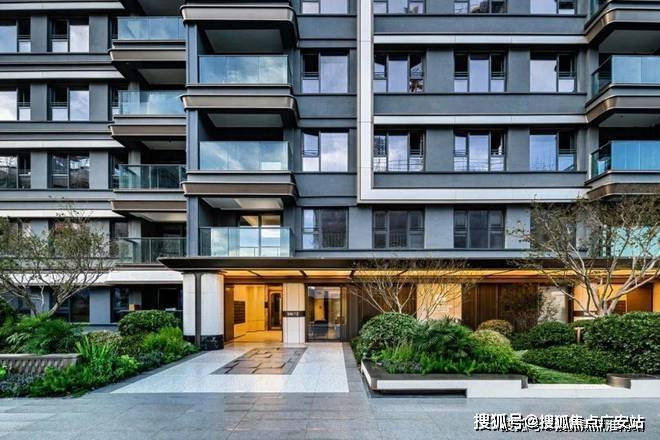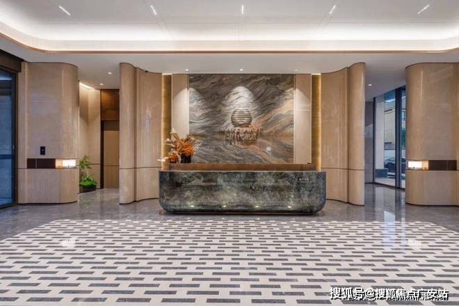 迎宾大道的两侧,浅米色的仿石材景墙与大堂入口遥相呼应,纯净的质感、古铜色的装饰、简约的线条,搭配着酒店式的雅奢之境,创造出优雅、静谧又松弛的体验。而精致细腻的金属护栏、定制化的地面铺装、内嵌式的灯光照明等细节,将度假感、雅奢感和艺术感高度浓缩在每个日常生活场景中。