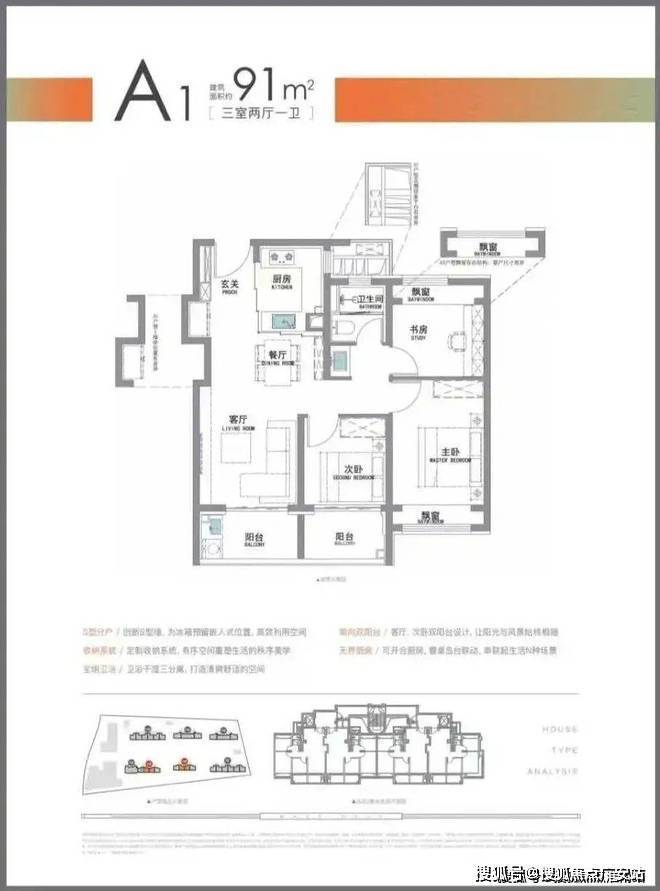 全是9️⃣1️⃣平三房一卫户型