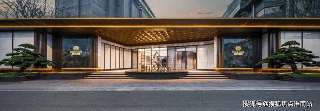 精致的迎宾水景、苍劲滴翠的罗汉松,为城市的界面,增添一抹亮色,也让当代年轻人,在享受现代都市生活的同时,感受到家的温暖和亲切。蓝翡翠的奢石,以深邃幽远的尊蓝色基底,尽显光彩下的神秘奢华;而顶部异形的仿铜星空顶设计,用香槟金色斜角造型铝板搭配熠熠灯光,碰撞出科技与艺术的美学。