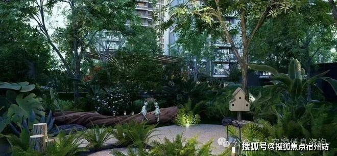 九园:潮汐花园(社区外围口袋花园)、浔湾秘境(会所式入户)、社交剧场、漫游森境、下沉会所、阅读花园、社交花园、自然博物馆等。
