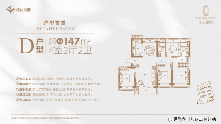 【佳运·瑞璟湾】产品为建面约98-166㎡3-4房,得房率高达约78%,相比常规户型72-75%得房率要更高。