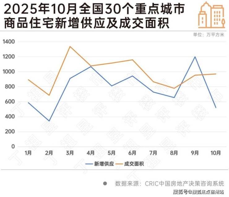 从2025年10月的供需情况来看,30个重点城市新增供应522万平方米,绝对量为年内次低,仅略高于2025年2月,包括一线城市和二三线热点城市在内的各个城市供应环比近乎“全线飘绿”。