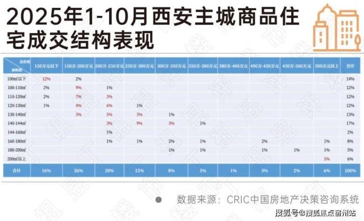 在成交结构上,总价200万以内的刚需刚改产品为西安市场成交主力,刚需刚改类四代宅在有效价差面前,产品优势被价格优势替代。同时,总价500万以上高改产品出现头部聚焦效应。