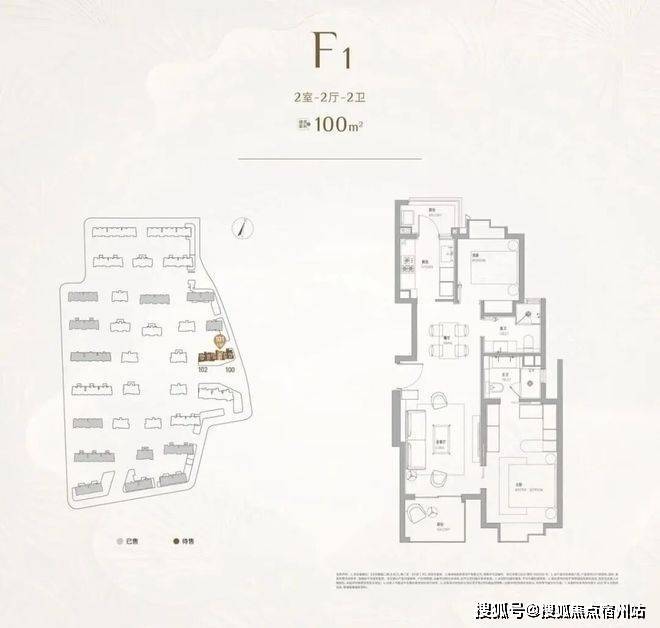 建面约100㎡2房2卫,总价约880起,单身都市菁英、年轻家庭上车首选!