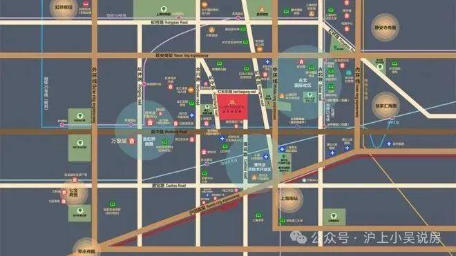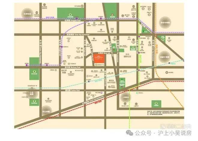 交通配套方面:项目地处长宁、徐汇、闵行三区交汇的金虹桥板块的核心区位,拥有多维立体的交通,延安高架、中环线、外环线环伺。