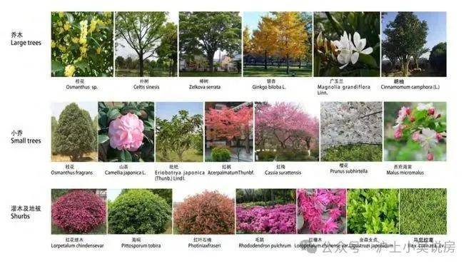 四季更迭的景观植被巧妙布局, 共有20多种乔木、小乔、灌木等植物种类,营造出“四季有色”的美妙景象。