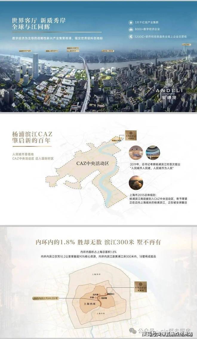 杨浦滨江CAZ 肇启新的百年● 人民城市首倡地,迈入国际时区● 2019年,总书记考察杨浦滨江时首次提出“人民城市人民建,人民城市为人民”● 上海市2035总体规划:✅ 安德里售楼处电话:400-882-4258(预约)✅ ✅杨浦滨江南段被划入CAZ中央活动区,寄予厚望