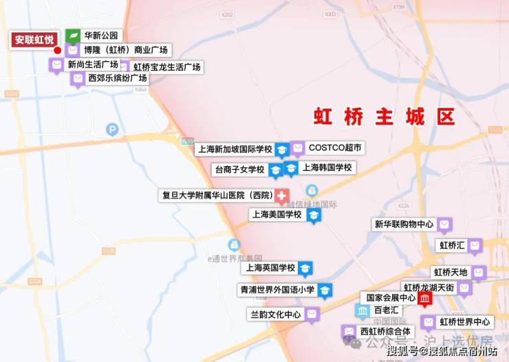 在徐泾新房还在为一个超市纠结不已的时候,位于华新核心区的安联·虹悦,家门口就有新尚生活广场,向北步行可达约7.7万方的博隆虹桥商业广场,一街之隔还有虹桥宝龙城。周边更有朋联国际购物中心、西郊乐缤纷广场、Costco等近40万方大体量的商业配套,无限繁华触手可及!