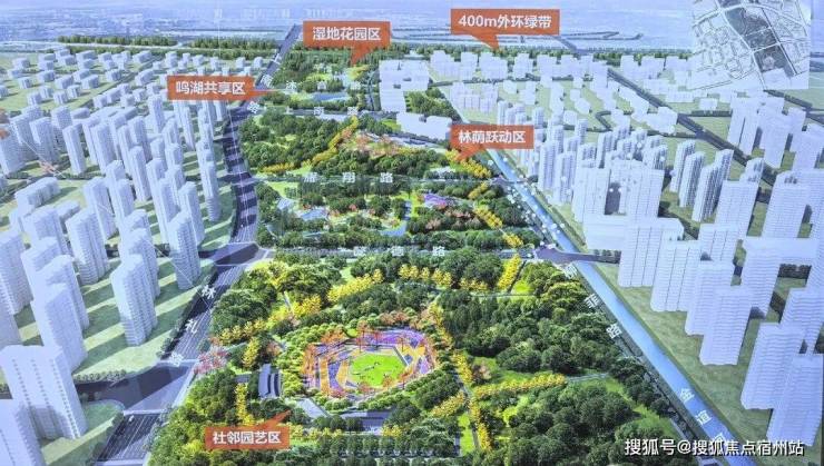 整座公园 (在建中 ) 划分为:湿地花园区、鸣湖共享区、林荫跃动区和社邻园艺区,四大功能分区。