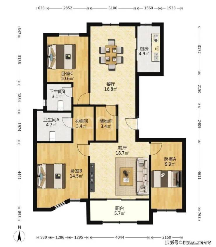 主卧朝南:套间衣橱卫生间