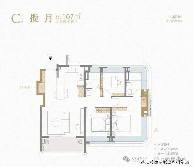 建面约107㎡的3房,客厅的面宽被拉长到了约4.7米;3S墙的设计,扩容了家的储物角落;主卧、主卫双270°全景飘窗的设计。
