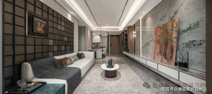 比如,该样板间的吊顶采用了工艺水准更高的圆弧形吊顶,空间过渡圆润自然,营造了丰富的层次感,使得整个户内空间更加舒适阔绰。