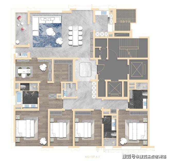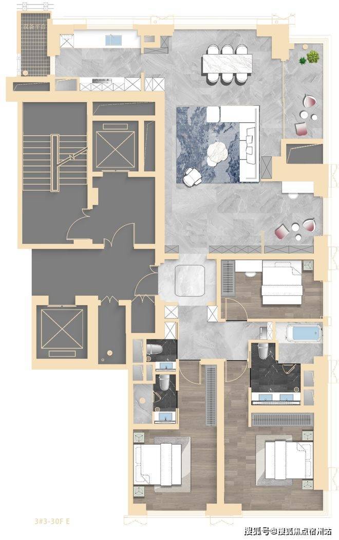 尤其主卧星级套房,配置独立衣帽间、书房,奢华主卫四分离,双台盆+淋浴区+大浴缸+智能马桶,私密性&奢适度无敌;