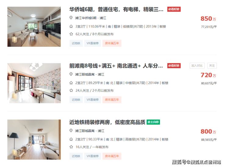 特别是浦江华侨城、浦江颐城晶寓、浦江颐城尚院这一批房龄较新的,挂牌价格大多稳定在8万/㎡左右。