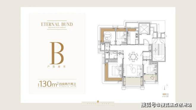 我们来看首推的约130㎡户型,这个面积段的四房产品,很容易面对多个房间分隔,导致空间零碎,或者部分房间不实用的问题。