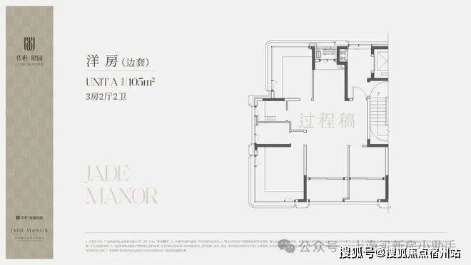 1、约105方边套户型——三房两厅两卫