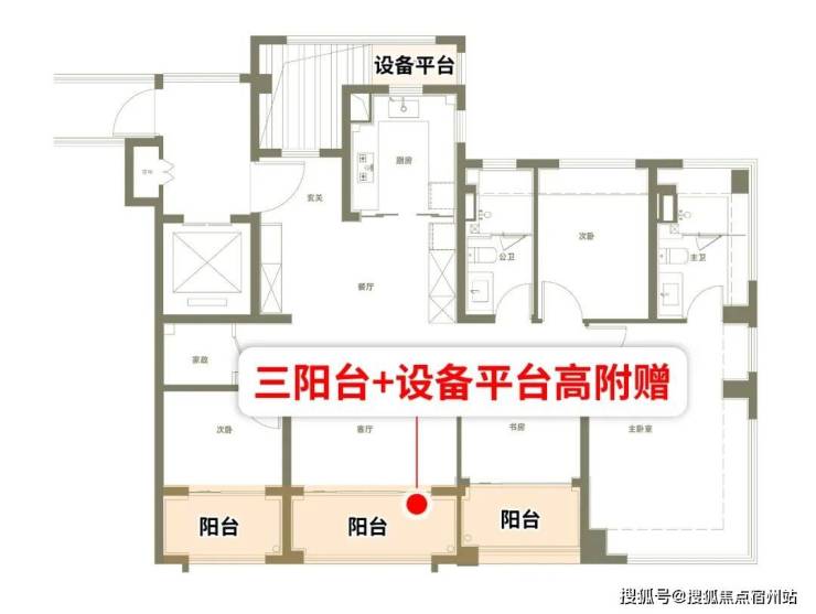 该户型标配的三阳台,阳台附赠面积约7.15平,简单换算相当于近90万的额外馈赠。