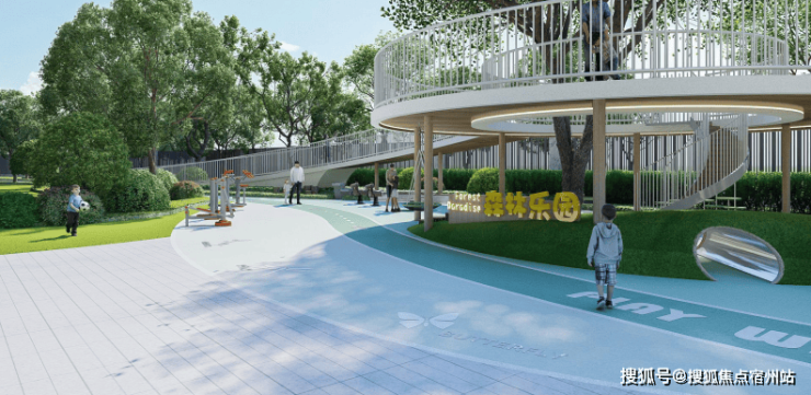 儿童森林主题带——长度200m,面积约660㎡主题林荫游戏带。