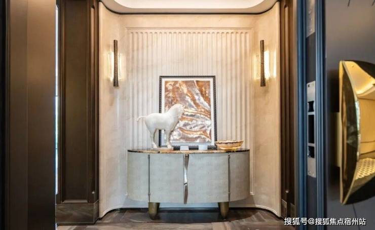 例如入户玄关铺设有“石材皇后”鱼肚印象,这种级别的奢石在很多项目中通常仅作局部镶嵌。
