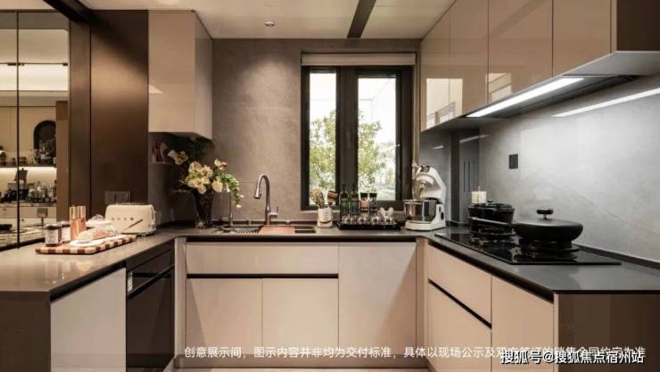 U型厨房,做成半开放式的,实际交付会有移门。