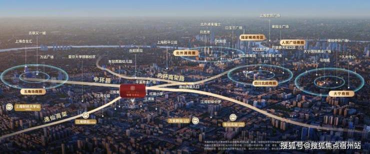 项目位于虹口江湾黄金地段,距中环直线距离仅约1.2km,离内环仅约1.7km,称得上是离内环至近的中环。项目周边更有逸仙路/中环/内环/南北高架4大高架环绕,日常开车随心可通城市各核芯商圈。