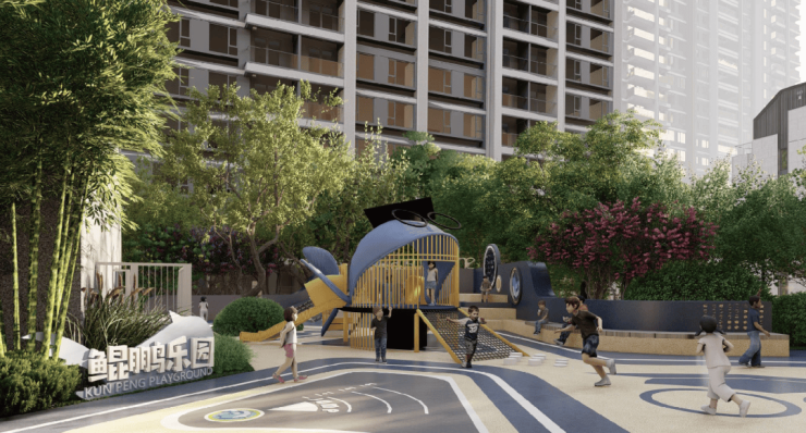 “鲲鹏乐园”主题儿童乐园、鲲鹏书院、老人颐乐空间、多元艺术花园、约760m“汽车文化”主题跑道、森林漫步道等共享场域为居者构筑一个有温度的社区。