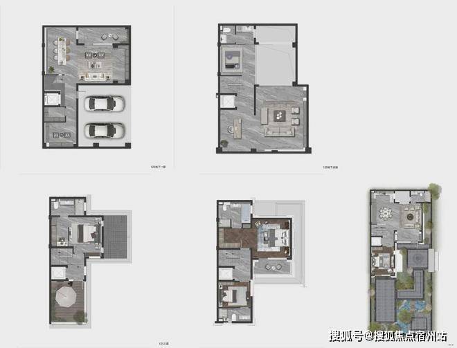 约125㎡的明星户型做到了5套房设计,地下一层、地上三层的空间形态,将空间尺度无限放大。