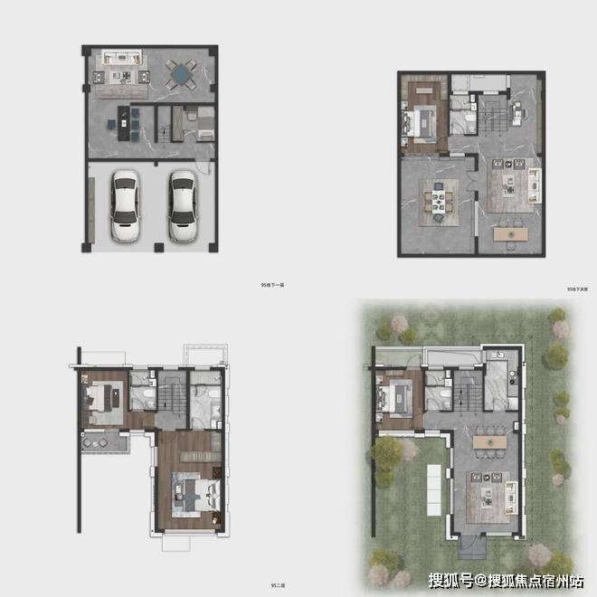 约95㎡合院产品做到了地上2层,地下室挑高5.5米。